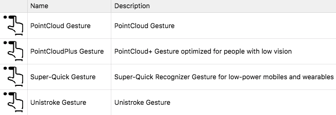 - $1: Unistroke recognizer - for recognizing unistroke gestures